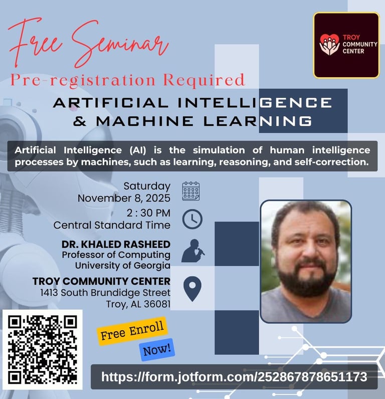 Learn about AI & Machine Learning from Dr. Rasheed, who is a professor of Computing at the University of Georgia. Make the most of this FREE seminar and sign up today.